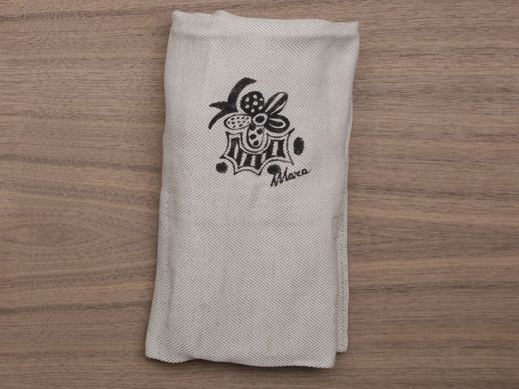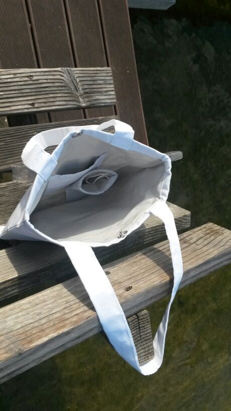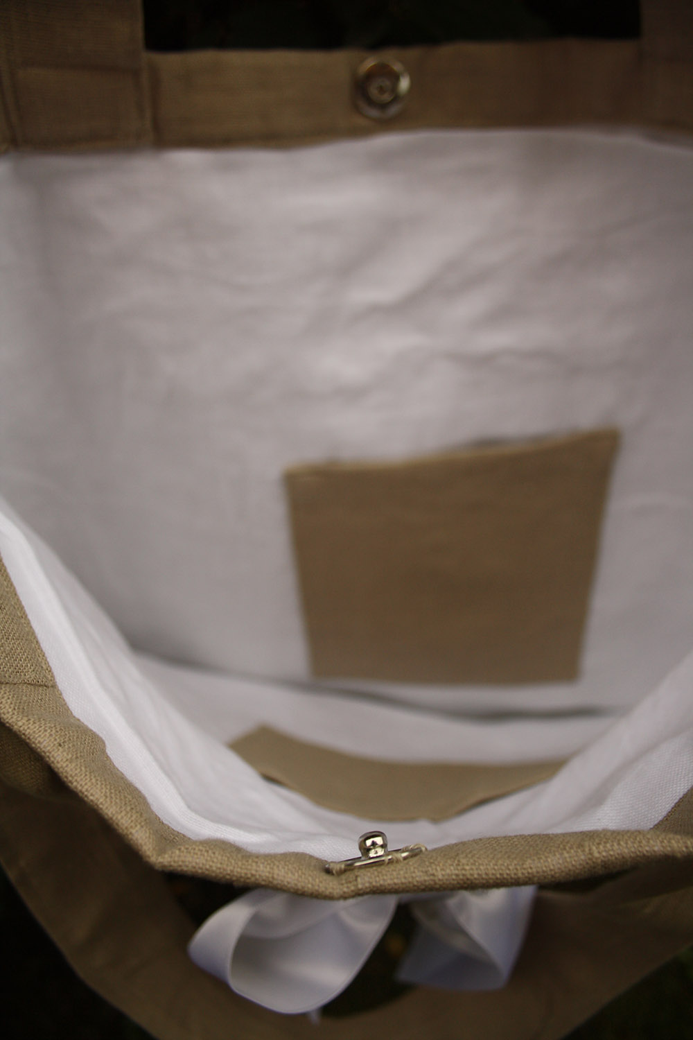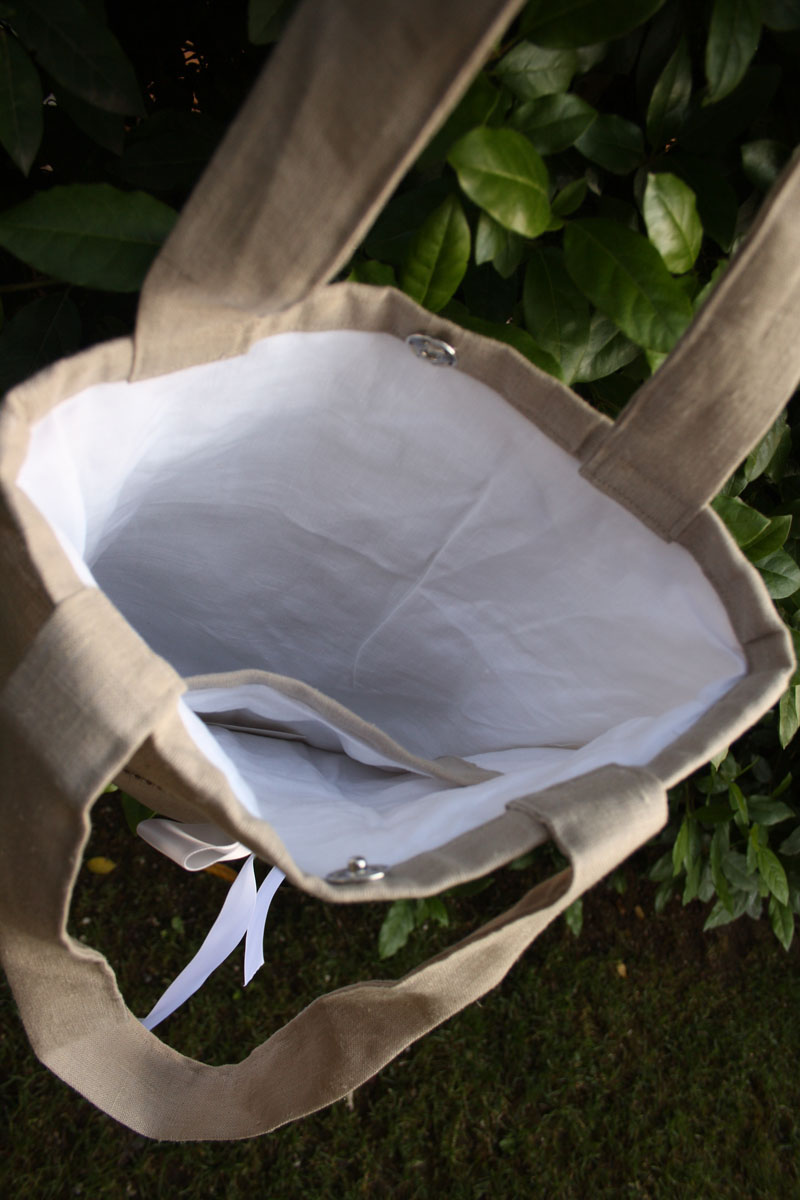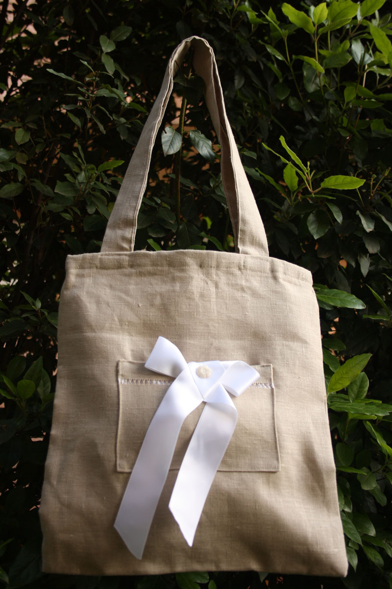 borsa in lino con taschino esterno ricamato,foderata in cotone