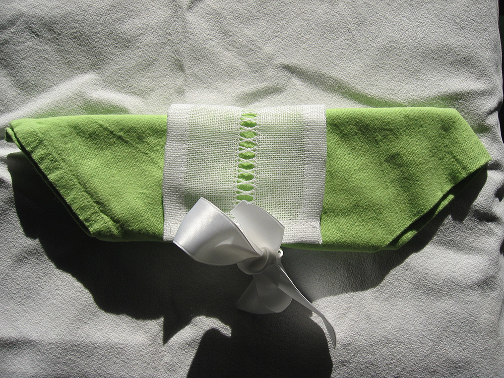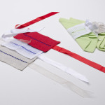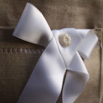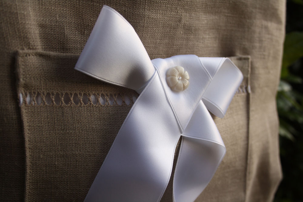 Candele profumate con sacchetto in lino ricamato con mezzo gigliuccio