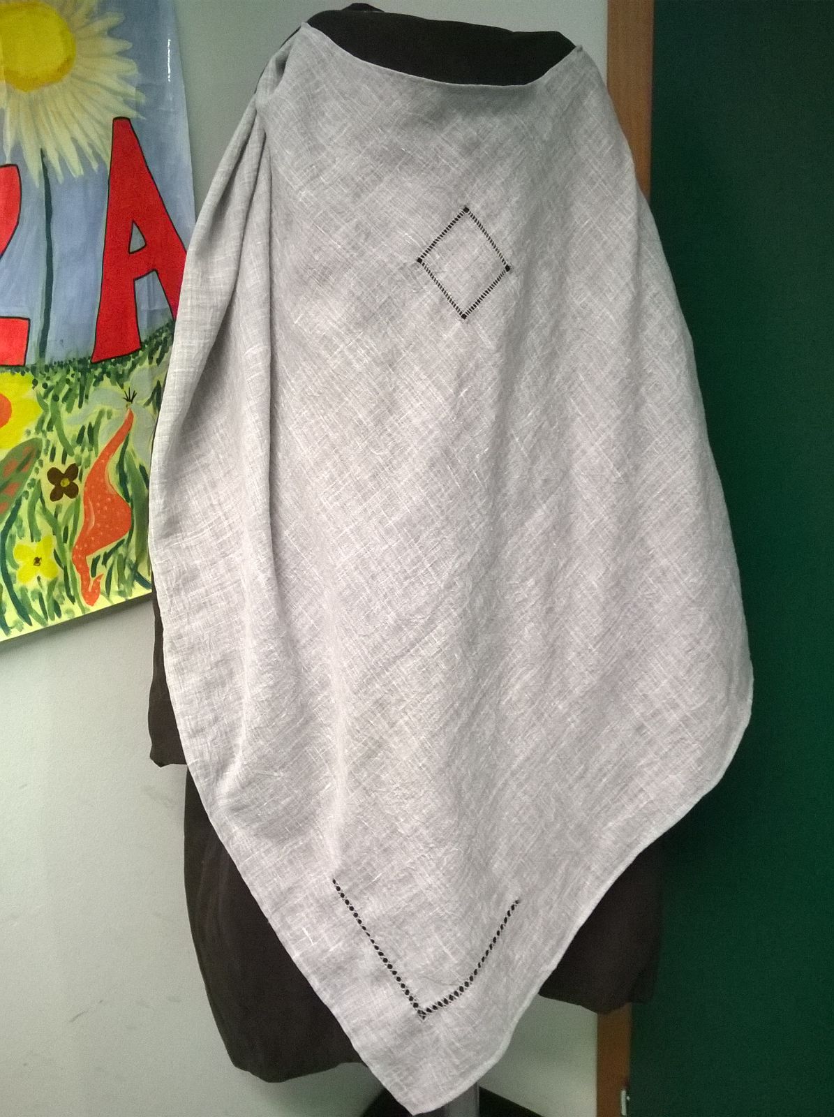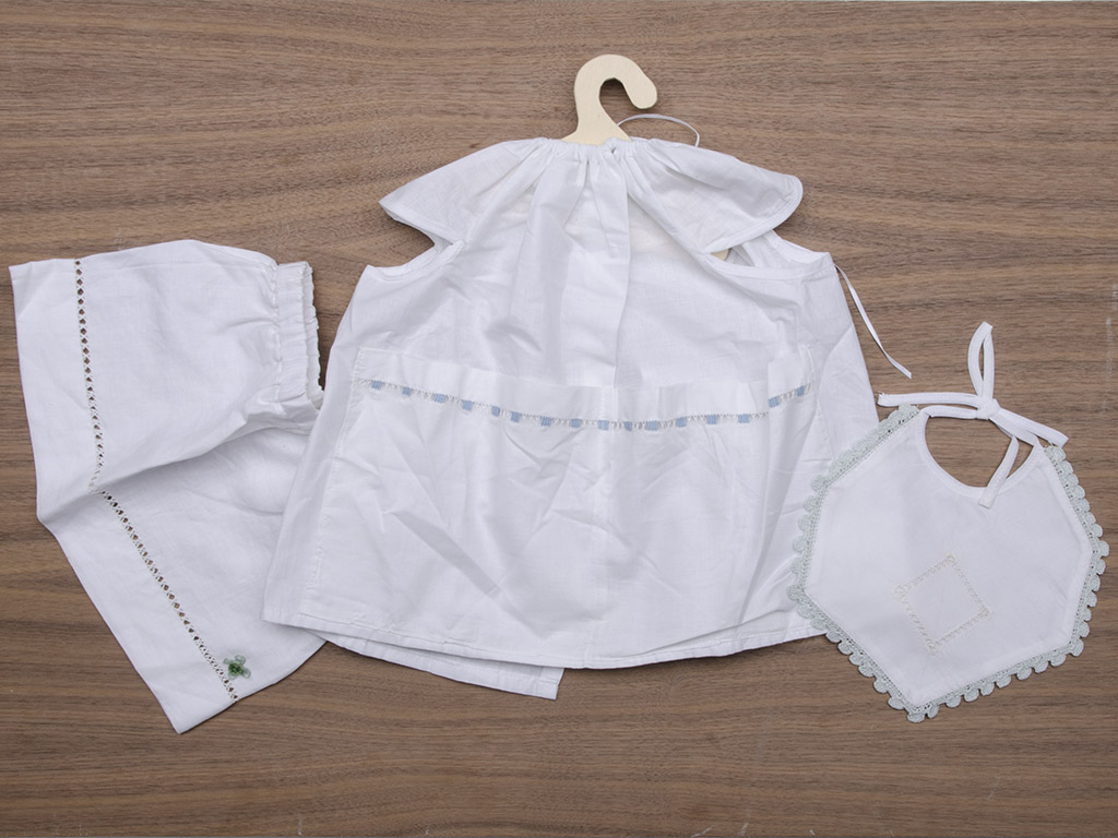 Articoli per neonati: coprifasce in batista di cotone con tascone ricamato a mezzo gigliuccio