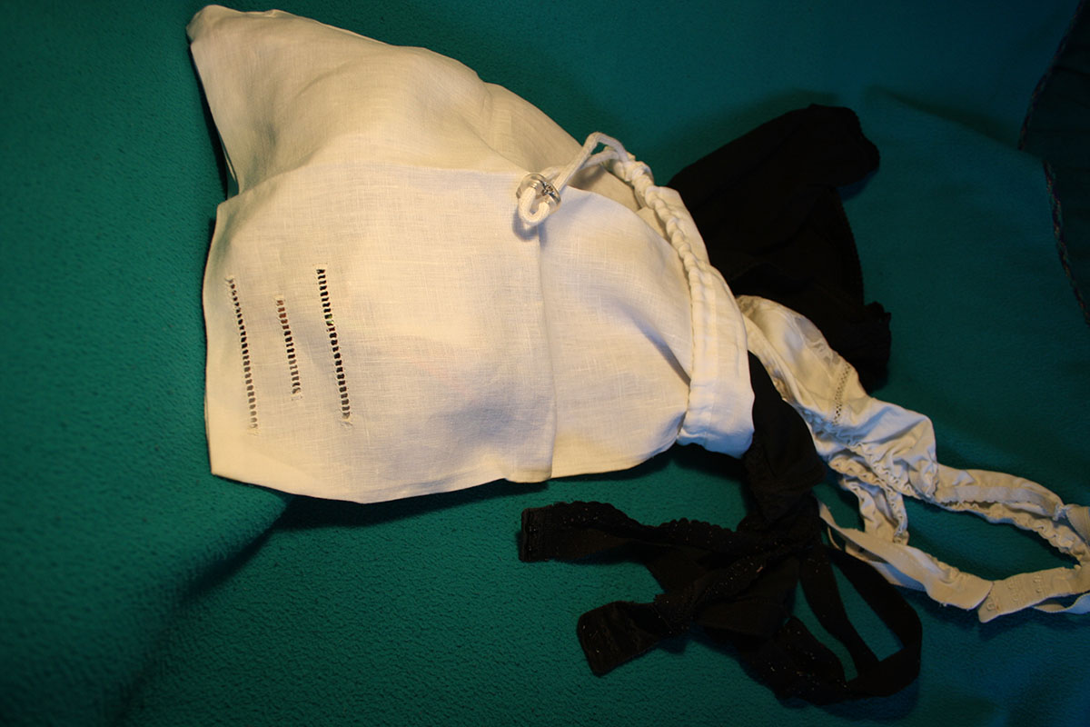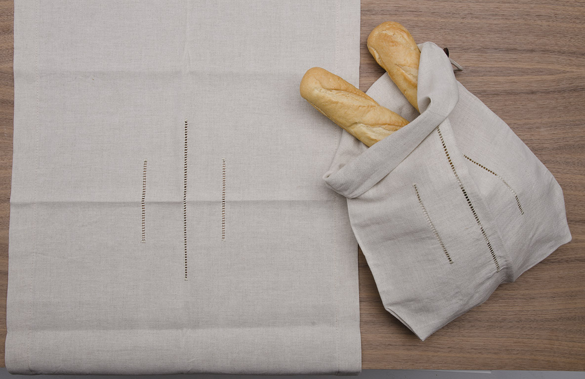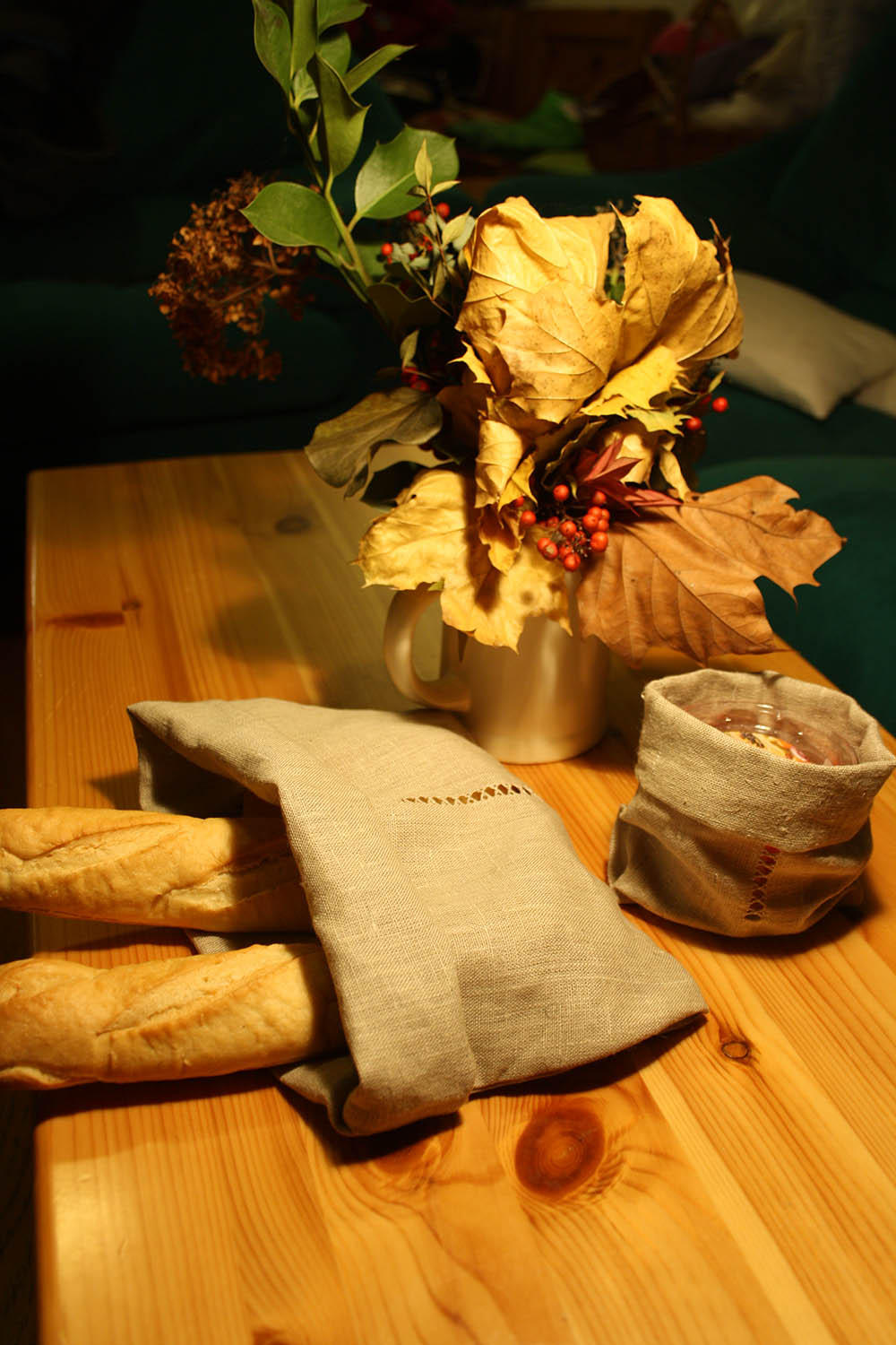 Nuovo sacchetto portapane in lino grezzo e sacchettino portacandela dello stesso tessuto